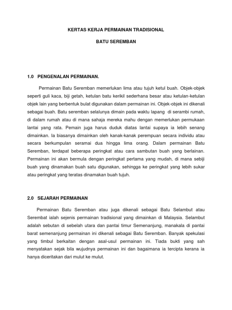 Kertas Kerja Permainan Tradisional Pdf Document